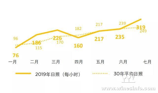 夏季氣溫偏高,時而炎熱(7月創下歷史氣溫新高),因降水量減少,葡萄成熟的速度減緩。盡管如此,8月中旬的降雨仍對葡萄生長有益。