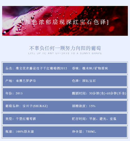 香氣 :?散發(fā)著意式蛋糕、紅棗、無花果、新鮮藍色水果與干果的氣息,伴隨著明顯的雪茄般的橡木桶香氣
