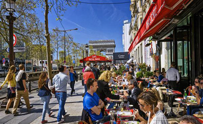巴黎的露天咖啡館也是街頭一景:一排排藤椅面向街道擺放,將人行道變成露天劇場,人們不僅在這里進餐,也享受“閑適的奢侈”。“我是來喝酒和看熱鬧的。”一位坐在巴黎露天咖啡座上的德國顧客說,“我喜歡這里。德國也有咖啡館,但沒有閑坐看人的文化。”